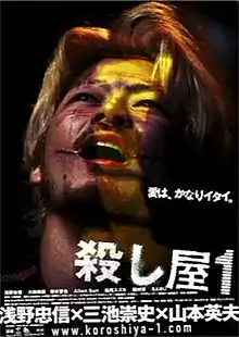 Ichi the Killer (Japanese: 殺し屋1, romanized: Koroshiya Ichi, lit. 'Hitman One') is a 2001 Japanese yakuza film directed by Takashi Miike, written by Sakichi Sato, and starring Tadanobu Asano and Nao Omori. Based on Hideo Yamamoto's manga series of the same name, its plot follows a psychologically damaged man who is manipulated into assaulting or killing rival faction members of feuding yakuza gangs while being pursued by a sadomasochistic enforcer.
