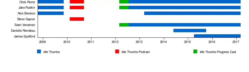 In March 2013, Breckon returned to San Francisco to take a writing position at Telltale Games and resumed his hosting duties with Idle Thumbs.[19] Shortly thereafter, Idle Thumbs celebrated its 100th podcast, in which Rodkin discovered that he was the only host to appear in every episode.[20] Vanaman and Breckon also founded a new podcast in May dedicated to discussing the intricacies of DOTA 2 and Lords Management.[21]