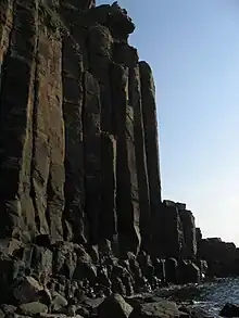 Nearly all the people of Ikitsuki live on the east side of the island. The west side faces out into the open ocean (sea) and is very windy. In addition, much of the west side of the island is cliff-face, with only a few spots which are flat enough even for terraced farming.