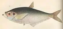 Ilisha africana, called the West African ilisha, is a species of longfin herring native to the coasts, lagoons and estuaries of western Africa from Senegal to Angola. It prefers shallow waters, and is unlikely to be found below 25 m. Some individuals can reach 30 cm, with the average closer to 18 cm.