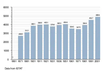 - ↑ "Popolazione Residente al 1° Gennaio 2018". Italian National Institute of Statistics. Retrieved 16 March 2019.