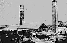 By May 1915, the price of copper had risen, probably due to wartime demand, and there was the prospect of the mine reopening.[41] In 1916, the old Queen Bee Copper Mine was reborn as the Mount Illewong Mine. The mine was dewatered, after around four years of inactivity. A new concentrator plant replaced the on-site smelting of the previous operations; the copper concentrate was shipped to a copper smelter and refinery at Port Kembla.[42][43][44] This revival of the mine—it employed only around twenty men in February 1917[45]—failed to last. Operations were "temporarily curtailed", in October 1917, with the reason being that Port Kembla already had too much ore.[46] Six men later worked the mine as tributers—supplying the C.S.A. mine's smelter at Elouera, north of Cobar township—but large scale mining there was over. Around March 1919, the equipment was stripped from the old Queen Bee Mine.[47]