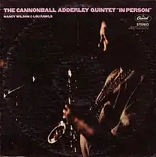 In Person is a "live" in-studio album by jazz saxophonist Cannonball Adderley recorded in Hollywood, California in 1968 featuring performances by Adderley with Nat Adderley, Joe Zawinul, Victor Gaskin and Roy McCurdy with guest vocalists Lou Rawls and Nancy Wilson contributing on one song apiece. "The Scavenger" is the product of observation, being written by Zawinul during the previous year's garbage collection strike in New York City. "Sweet Emma" is Nat's tribute to the New Orleans pianist Sweet Emma Barrett.[2]