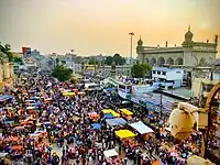 The culture of Hyderabad is distinct, with a mix of traditional and modern influences. The goods sold by the Bazaar vendors cater to the need of every segment of the society. Sarojini Naidu generally provides a panoramic and picturesque views of the colors, sounds, smells, and sights of a Bazaar in Hyderabad. She has also used vibrant rhymes to describe the magnificence of the bazaars and also the products sold in the bazaars.[1][2][3]