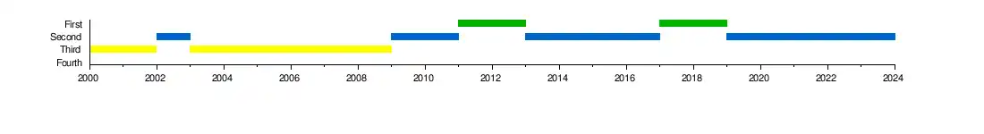 So far this century, the club has been in 3 of the 4 divisions of the local league system: