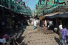 From these first early settlers, communities of Chinese influence sprung up throughout the area, neighbourhoods of immigrants cooking and eating foods from their homeland. These Canton cuisines, known in China to be light and fresh in flavour, began to adapt and evolve into the new area. One reason is due to the availability of ingredients and spices being different from those in Guangdong, therefore forcing the flavour to naturally Indianize; additionally, Chinese businesses began to cater their foods to the tastes of their Indian patrons to increase sales, utilizing more spices and heavier douses of sauce and oil than their traditional techniques required.[6] Recognized as one of the first Indo-Chinese restaurants in the country, the still-standing corner eatery of Eau Chew gained its popularity by using the fashionable pull of exotic Chinese foods combined with non-threatening familiar flavours of chili, curry, and corn starch, to attract and keep-on customers.[3][6] Kolkata today boasts the only Chinatown in the country, a neighbourhood known as the Tiretti Bazaar.[2] This being said, nearly every city in India has these adapted "Chinese" foods, whether found in restaurants or hawked by roadside vendors, as the greasy, spicy, stir-fried food has become wildly popular throughout the country.[6] It is important also to note those Chinese returning from India to their homelands in China's south, for they often brought their new culinary practices and flavours with them, working to Indianize the taste of Cantonese-style foods in southern coastal cities such as Hong Kong.[6]