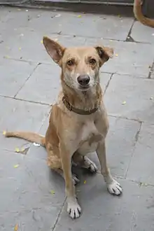 The Indian pariah dog, also known as the Indian native dog, INDog, Nadan,[6][7] South Asian pye dog, Desi Kutta,[4][6] and Neri Kutta,[8] is a landrace of dog native to the Indian subcontinent.[5] They have erect ears, a wedge-shaped head, and a curved tail. It is easily trainable and often used as a guard dog and police dog.[9][10] This dog is an example of an ancient group of dog known as pye-dogs. There is archaeological evidence that the dog was present in Indian villages as early as 4,500 years ago.[11]