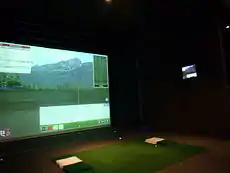 A golf simulator allows golf to be played on a graphically or photographically simulated driving range or golf course, usually in an indoor setting. It is a technical system used by some golfers to continue their sport regardless of weather and time of day in a converted premises. Simulators have been available since the early 1970s, and systems range in cost from compact units costing well under $200 that work with a computer or video game console, to sophisticated ones costing tens of thousands of dollars. Advanced systems may utilize a dedicated room, hitting screen, projector and other paraphernalia.