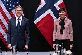 Søreide met with U. S. Secretary of State Antony Blinken in May 2021 in Reykjavik, Iceland, to discuss the situation at the Gaza strip. Following the meeting, Søreide explained that Blinken had stressed the expectation of a deescalation and path to a cease fire. Søreide described it as "the only thing to prevent this from escalating out of control".[26]