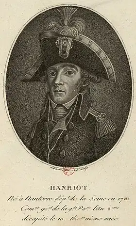 The insurgent committee, which was now sitting at the Hôtel de Ville, dictated to the Commune, now reinstated by the people, what measures it was to take. It secured the nomination of François Hanriot, Commandant of the battalion of the Jardin des Plantes, as sole commander-in-chief of the National Guard of Paris. It was decided that the poorer National Guards who were under arms should receive pay at the rate of 40 sous a day. The assembly of the Parisian authorities, summoned by the departmental assembly, resolved to cooperate with the Commune and the insurrectionary committee, whose numbers were raised to 21 by the addition of delegates from the meeting at the Jacobins.[25] Hanriot's first care was to seize key positions—the Bassin de l'Arsenal, the Place Royale, and the Pont Neuf. Next, the barriers were closed and prominent suspects arrested.[26]