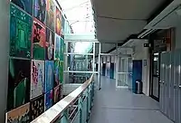 The 19-acre campus includes three libraries/media centers, a 400-seat theater, three cafeterias, seven science labs, a design technology center, outdoor learning centers, dance and music rooms, two gyms, functional fitness center and sports fields.[3]