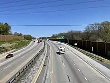 I-81 enters Pennsylvania at the Maryland state line about 13 miles (21 km) south of Chambersburg; it also has its first exit at the state line, junctioning with Pennsylvania Route 163 (PA 163) there. In Chambersburg at exit 16, it meets U.S. Route 30 (US 30; the Chambersburg Pike to Gettysburg). About a mile (1.6 km) north of Carlisle at exit 52, it meets US 11, which connects to the Pennsylvania Turnpike/I-76 (halfway between Philadelphia and Pittsburgh), since I-81 has no direct interchange with I-76.[3][4] The stretch of US 11 connecting I-81 to I-76 is known locally as the "Miracle Mile" since it contains plenty of traveler services including restaurants, gas stations, lodging, truck stops, and shops.[5] From here, I-81 travels in an almost precisely east–west direction for the next 37 miles (60 km) (until exit 89). At exit 59, it has an interchange with the western terminus of PA 581. I-81 becomes the Capital Beltway from exit 59 to exit 70. At exit 67, the road comes to a stack interchange with US 22 and US 322; US 322 merges with I-81. Exit 70 is the eastern terminus of the US 322 concurrency and the northern terminus of I-83 and is located in Colonial Park. For the entire segment between the Mason–Dixon line and I-78, I-81 runs through the Great Valley. North of Harrisburg between I-83/US 322 and I-78, the highway passes near Hershey and Fort Indiantown Gap.[3][4]