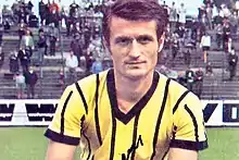 In October 1967 Rapid played a friendly game against Alemannia Aachen in which Ionescu scored two goals and in December Romania's national team played a friendly against Aachen in which Ionescu scored three goals.[6][11] These five goals impressed the leaders of the German club who wanted to transfer Ionescu to their team.[6][11] During Romania's communist era, transfers of Romanian footballers outside the country were rarely allowed, Ionescu had to convince the Romanian Football Federation to allow the transfer and he managed to do so after having a meeting with communist politician Gheorghe Apostol who talked to Leonte Răutu and helped Ionescu receive approval for his transfer in Germany, thus becoming the first Romanian footballer who obtained in the communist regime the right to play abroad.[5][6][11] Aachen paid $100,000 and a bus for his transfer and Ionescu made his Bundesliga debut on 17 August 1968 under coach Michael Pfeiffer in a 4–1 away victory against Nürnberg scoring a total of 7 goals in 24 league matches by the end of his first season spent at the club, making a successful couple in the team's offence with Roger Claessen, helping the team finish second in the championship.[4][5][6][11][12]