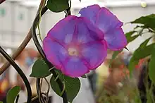 Ipomoea indica[3] is a species of flowering plant in the family Convolvulaceae, known by several common names, including blue morning glory, oceanblue morning glory, koali awa, and blue dawn flower. It bears heart-shaped or three-lobed leaves and purple or blue funnel-shaped flowers 6–8 cm (2–3 in) in diameter, from spring to autumn. The flowers produced by the plant are hermaphroditic. This plant has gained the Royal Horticultural Society's Award of Garden Merit.[4][5]