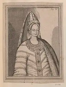 Irina Feodorovna Godunova (Russian: Ирина Фёдоровна Годунова, romanized: Irina Fyodorovna Godunova; 1557 – 29 October 1603), also known by her monastic name Alexandra (Александра), was the tsaritsa consort of all Russia by marriage to Feodor I from 1584 until his death on 17 January [O.S. 7 January] 1598. As her husband died childless, she was the de facto ruler of Russia until she retired to Novodevichy Convent nine days later. She remained the nominal ruler of Russia until her brother Boris Godunov was elected tsar on 3 March [O.S. 21 February] 1598.[1][2][3][4]
