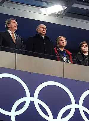 Skvortsova became a TV presenter and she was chosen to be one of the first torchbearers for the Sochi Olympics. At the opening ceremony she was sitting with Russian President Vladimir Putin.[1]