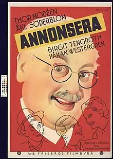 It Pays to Advertise or simply Advertise! (Swedish: Annonsera!) is a 1936 Swedish comedy film directed by Anders Henrikson and starring Thor Modéen, Håkan Westergren and Birgit Tengroth.[1] It was shot at the Råsunda Studios in Stockholm. The film's sets were designed by the art director Arne Åkermark. It is inspired by the 1914 Broadway play It Pays to Advertise by Roi Cooper Megrue and Walter C. Hackett, previously adapted into the 1931 film of same title starring Carole Lombard.