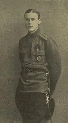 Awards | Cross of St. George Fourth Class, Cross of St. George Third Class, Cross of St. George Second Class, Order of Saint Anne Fourth Class, Order of Saint Anne Third Class, Order of Saint George Fourth Class, Order of Saint Stanislas Third Class with Crossed Swords and Bow, Order of Saint Vladimir Fourth Class with Crossed Swords and Bow, Gold Sword for Bravery, French Croix de Guerre with palm |