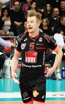 He started his career as a setter in 2004, but later moved to the outside hitter role. He started playing in Serie A1 at 16 years old. His first club was RPA-LuigiBacchi.it Perugia, where he played for two seasons. After this, he moved to M. Roma Volley. In the 2007/08 season, he played for Andreoli Latina. Then he came back to M. Roma Volley and played there until 2012, when he signed with Lube Banca Macerata. With this team, he won the Italian SuperCup in 2012 and the Italian Championship 2013/14.[1][2] On May 9, 2014, his departure from Lube was announced.[3] Then for two seasons, he was a player of Russian club VC Dynamo Moscow. He moved to of Al-Arabi SC in Qatar and won the Cup of Emir. Zaytsev came back to Serie A1 and joined Sir Safety Conad Perugia, the overall dominating Team of the 2017/18 season in Italy. Despite failing to reach Champions League final, after losing to Zenit Kazan again, the team managed to take the bronze medal. Zaytsev moves the following season to Modena Volley as Perugia announced that Wilfredo Leon would join the team, taking his spot. Zaytsev has also expressed the desire to play in his favorite role as opposite spiker again.