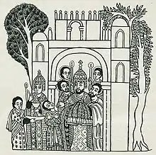 Iyasu's death caused much distress in the capital, especially amongst the priests of Debre Berhan Selassie, who openly displayed his gifts to them, and mourned their dead monarch for a month.[34] Bruce writes that Iyasu was buried on Mitraha Island, where he was shown Iyasu's body interred amongst "the bodies of all his ancestors".[35]