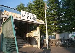 Izumi Station (泉駅, Izumi eki) is a railway station in the city of Fukushima, Fukushima Prefecture, Japan operated by Fukushima Kōtsū.