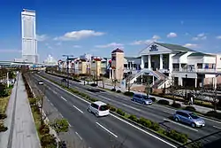 The main industries of Izumisano remain food-related: agriculture, commercial fishing and food processing. The main crops are onions, eggplants, cabbage, and broccoli. Textile production is also important, with the city accounting for 47% of domestic towel production. Due to the proximity of Kansai International Airport, airport-support and aviation-related industries have increase. Peach Aviation has its head office in Izumisano.[5][6] The city is also home to the 256-m (840-ft) Rinku Gate Tower Building, the third tallest building in Japan.