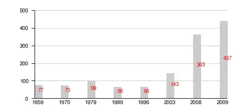 Year | 1959 | 1970 | 1979 | 1989 | 1996 | 2003 | 2008 | 2009 |