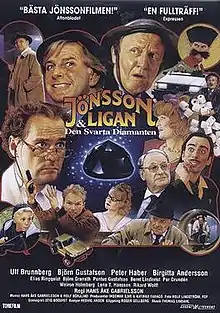 Jönssonligan & den svarta diamanten (English: The Johnson Gang & the Black Diamond) is a Swedish film about the gang Jönssonligan made in 1992. It's the first film not to feature the original gang leader Sickan played by Gösta Ekman. The famous theme of the previous films is also replaced by a new theme to mark the absence of Sickan. The original theme only plays briefly in a single scene.