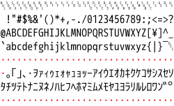 Single-byte character set of Shift JIS | ||||||||||||||||