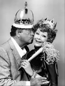 Gleason met dancer Genevieve Halford when they were working in vaudeville and they were married on September 20, 1936.[14][47][48] Halford wanted a quiet home life but Gleason led an active nightlife.[14] Separated for the first time in 1941 and reconciled in 1948,[15] the couple had two daughters, Geraldine (b. 1940) and Linda (b. 1942).[49][50] Gleason and his wife informally separated again in 1951.[48] It was during this period that Gleason had a romantic relationship with his secretary Honey Merrill, who had been a showgirl and Miss Hollywood of 1956.[51]