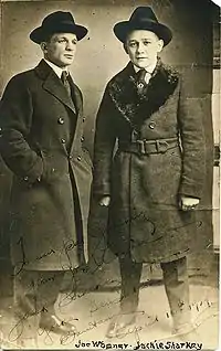 Sharky and Joe Lynch drew in a fifteen-round points decision at New York's Madison Square Garden on September 28, 1920, although Lynch was down in several rounds from the blows of Sharkey.[5] Sharkey's ability to stay fifteen rounds with a top bantamweight contender put him squarely in the list of top contenders himself. On December 2, 1920, in a somewhat more historic bout, Lynch defeated Sharkey in a fifteenth-round knockout at Madison Square Garden. Sharkey had the better of the bout up until the sixth round, when Lynch became far more dominant. Lynch's win gave him the right to challenge Pete Herman for the Bantamweight Championship three weeks later.[6] On July 2, 1925, at the Polo Grounds in New York, home of the New York Giants, the two drew in four rounds to a large house in which Lynch was somewhat favored to win.[1][7]