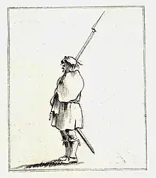 Many of the Jacobite regiments were themselves affected quite heavily by desertion and during the later phases of the rebellion the Jacobite administration implemented an equivalent of the old Scottish 'fencible' system, demanding that landowners provide one properly equipped man for every £100 of rent.[56] The quotas were filled in various ways and one third of the Jacobites from Banffshire were reported to have been 'hired out by the County': as with the British army, paid substitution was also common, in which an individual hired another person to serve in their place.[57] Such hired men were usually treated leniently after the Rising; many were released or simply left undisturbed at home.[57]