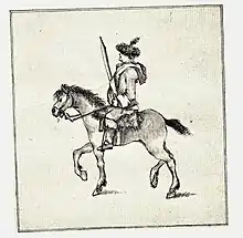 Jacobite cavalry was small in number in 1745-6 and were restricted largely to scouting and other typical light cavalry duties. Despite this, the units that were raised arguably performed better in this role during the campaign than the regulars opposing them.[85] All except one of the 'regiments' comprised two troops and were over-officered to an even greater degree than the infantry,[85] as commissions were used to reward Jacobite support.