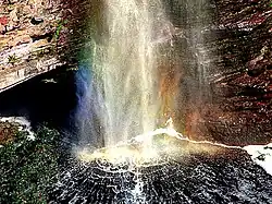 The upper river basin includes part of the 46,000 hectares (110,000 acres) Morro do Chapéu State Park, created in 1998.[1]