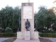 In 1927 Chicharro commenced his career as municipal official, appointed one of 64 new councilors of the Madrid ayuntamiento.[76] In 1928 he grew to teniente de alcalde[77] responsible for the Chamberí district; appointed member of Junta municipal de Primera enseñanza he specialized in education issues,[78] dealing also with culture[79] and science.[80] Chicharro resumed contacts with Vázquez de Mella;[81] only weeks after his death, in March 1928, he arranged for a commemorative plaque to be mounted on the Escuela Normal de Maestros wall[82] and looked after his library.[83] In 1930 the press already referred to him as former teniente de alcalde, but it is not clear when he ceased.[84]