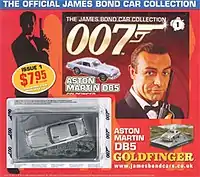 The James Bond Car Collection was a fortnightly (later monthly) release of James Bond model cars displayed in detailed scenes from the James Bond movies. From Bond's first car, the Sunbeam Alpine, to his newest, the Aston Martin DB10. The most legendary and some not so legendary cars from more than 50 years of Bond movies are featured. Each magazine issue came with a 1:43-scale model car from an Eon Productions James Bond movie, diecast in metal, with some models including gadgets and character figurines displayed on a moulded base.