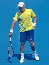 As with the previous three years, Duckworth commenced his season at the 2015 Brisbane International after being awarded a wild card. In round 1, he caused an upset, defeating world no.21 Gilles Simon, 6–2, 6–2. He then defeated Jarkko Nieminen reaching the quarter-finals in an ATP Tour event for the first time in his career.[9] But then he lost to Roger Federer in straight sets 0–6, 1–6.[10] Duckworth was given a wild card into the 2015 Australian Open, where he defeated Blaž Kavčič in round 1 but lost to the 24th seed Richard Gasquet in the second round. In February, Duckworth was the no.1 seed at the Delhi Challenger and Kolkata Challenger. He lost in round 2 at Delhi and lost in the final of Kolkata to Radu Albot. At Indian Wells, Duckworth qualified and defeated Dominic Thiem in round 1 before losing to Fernando Verdasco, as a result of his performance, he secured a top 100 ATP ranking for the first time in his career on 23 March 2015.[11] Duckworth then qualified for the 2015 Miami Open and reached the second round where he again lost to Verdasco. He then returned to the challenger tour playing in San Luis, Anning and Bordeaux where he lost in the semi-finals, quarter-finals and second round respectively. Duckworth then played in the Tour 250 event in Nice where he defeated lucky losers Frances Tiafoe and Quentin Halys to reach his second ATP tour quarterfinal of 2015 and his career. He then lost to Borna Ćorić in straight sets. At Wimbledon, Duckworth came back from 2 sets to 0 down again Malek Jaziri to win in five sets, posting his first win at Wimbledon.[12] He lost to compatriot Sam Groth in round 2.[13] At the US Open, Duckworth lost in round 1 to Hyeon Chung in straight sets. He played a number of challenger events to finish the season making the quarter finals in Ho Chi Minh, Ningbo and Knoxville. Duckworth ended the year with a ranking of World No. 120.