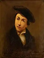 His first portrait was of Mayor William H. Baker (1813-1872),[4] which led to a meeting with Governor Conrad Baker, the Mayor's brother. This resulted in a commission to paint official portraits of six Indiana Governors; three posthumous (Jonathan Jennings, Ratliff Boon and James Whitcomb), three from life (Baker, Paris Dunning and Oliver Morton).