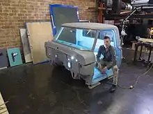 Georgopoulos explores ways to deconstruct the car in a non-traditional visual form so the viewer can appreciate the massive size and power of a car but in the confines of an interior space. The result is a 1:1 scale flat panel homage to the vintage automobile; made in the measurement specifications (length and width) of the manufacturer dimensions, giving the appearance of the car being flattened from above.