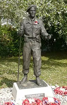 In May 1945 Hill served as military governor of Copenhagen, for which he was awarded the King Haakon VII Liberty Cross, and then assumed command of the 1st Parachute Brigade and oversaw its demobilisation. He retired from the British Army in July 1945, although he continued to serve as an officer in the Territorial Army, raising the 4th Parachute Brigade (Territorial Army) in 1947 and serving as its commanding officer until 1949. After standing down as commander of the brigade, Hill served on the board of a number of companies, including Lloyds Bank, the Associated Coal and Wharf Companies, and Powell Duffryn of Canada. Hill was an avid birdwatcher, with a particular claim to fame for being only the second person to discover a cuckoo's egg in the nest of a whinchat. He also helped to set up the Parachute Regiment Association and the Airborne Forces Security fund, acting as a trustee of the latter organisation for thirty years and chairman for five years. Hill married for a second time, wedding Joan Patricia Haywood in 1986. On 6 June 2004 he attended the 60th Anniversary of the Normandy landings, and a bronze statue of him was unveiled at Le Mesnil crossroads by Charles, Prince of Wales, Colonel-in-Chief of The Parachute Regiment. He died on 16 March 2006, two days after his 95th birthday. He is survived by his second wife and a daughter from the first marriage, Gillian Bridget Sanda.[1][2]