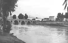 On 19 November, Hill visited the commanding officer of the French forces guarding a vital bridge at Medjez el Bab, and warned him that any attempt by German forces to cross the bridge would be opposed by the battalion. Hill attached 'R' Company to the French forces to ensure the bridge was not captured. German forces soon arrived at the bridge, and their commanding officer demanded that they be allowed to take control of the bridge and cross it to attack the British positions. The French rejected the German demands, and in conjunction with 'R' Company repelled subsequent German attacks that lasted several hours.[24] The battalion was reinforced by the U.S. 175th Field Artillery Battalion and elements of the Derbyshire Yeomanry, but, despite fierce resistance, the German forces proved to be too strong, and by 04:30 on 20 November the Allied forces had yielded the bridge and the surrounding area to the Germans.[25] Two days later, Hill received information that a strong Italian force, which included a number of tanks, was stationed at Gue Hill.[26] Hill decided to attack the force and attempt to disable the tanks, and the following night moved the battalion, less a small guard detachment that remained at Béja, to Sidi N'Sir where it linked up with a force of French Senegalese infantry. Hill decided that the battalion's section of 3 inch mortars would cover 'R' and 'S' Companies as they advanced up Gue Hill and attacked the Italian force, while a small force of sappers would mine the road at the rear of the hill to ensure the Italian tanks could not retreat.[27]