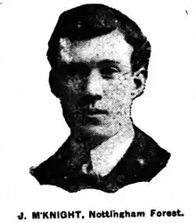After scoring 23 goals in 23 games by March 1912, McKnight moved to Preston North End for a fee of £1,100, scoring his only two goals for the club in successive matches against Liverpool and Sheffield United . Following Preston's relegation, McKnight returned to Ireland in October 1912, helping Glentoran to win the title, before returning to England with Nottingham Forest in May 1913. This spell was not a success, with McKnight failing to score in 9 appearances, although he did score in the FA Cup against Clapton Orient.[2][3]
