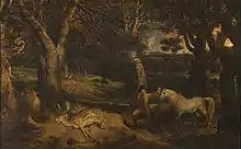 One of Ward's best-known paintings, The Deer Stealer, was commissioned in 1823 for the sum of 500 guineas by Ward's patron Theophilus Levett. When the work was finished, Levett pronounced himself delighted with the results, and consequently raised the remuneration to 600 guineas. Subsequently, Ward was said to have been offered 1,000 guineas for the painting by 'a nobleman,' which he declined. The painting now hangs at Tate in London.[10]