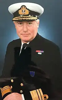 Educated at Gordonstoun School and the Royal Naval College, Dartmouth, Weatherall joined the Royal Navy in 1954.[2] He was given command of the frigate HMS Andromeda in 1982, serving with her in the Falklands War, and took command of the aircraft carrier HMS Ark Royal in 1985.[2] He joined the staff of the Supreme Allied Commander Europe in 1987 and then became Deputy Supreme Allied Commander Atlantic in 1989 before retiring in 1991.[2]