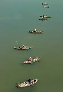 The Brahmaputra-Jamuna is a classic example of a braided river and is highly susceptible to channel migration and avulsion.[1] It is characterised by a network of interlacing channels with numerous sandbars enclosed between them. The sandbars, known in Bengali as chars, do not occupy a permanent position. The river deposits them in one year, very often to be destroyed later, and redeposits them in the next rainy season. The process of bank and deposit erosion together with redeposition has been going on continuously,[2] making it difficult to precisely demarcate the boundary between the districts of Sirajganj and Pabna on one side and the districts of Mymensingh, Tangail and Dhaka on the other. The breaking of a char or the emergence of a new one is also a cause of much violence and litigation. The confluence of the Jamuna and the Padma rivers is unusually unstable and has been shown to have migrated southeast by over fourteen kilometres between 1972 and 2014.[3]
