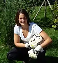 Chamot started her youth football in 1993 by FC Köniz. In 1997 she moved to the youth and young ladies team of FFC Bern and played in their reserve team in the 1. Liga. Within just two years she had advanced into their first team in the NLA. With FFC Bern she won the national Double twice, in the 1999/2000 and 2000/01 seasons.[2] Since 2009 the FFC Bern is integrated within the BSC Young Boys Betriebs AG, the holding of BSC Young Boys and since then the team plays in the NLA under the name YB Frauen. In 2010 Chamot won the women's title Goalkeeper of the year.[3] The team won the Swiss Championship at the end of the 2010/2011 season.