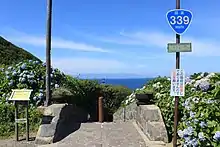 National Route 339 (国道339号, Kokudō Sanbyaku san-jukyūgō) is a national highway of Japan that traverses the western side of Aomori Prefecture, traveling south to north. The 108.4-kilometer (67.4 mi) highway begins as a concurrent route with National Route 7 in central Hirosaki, it then leaves National Route 7 in Fujisaki and travels north through the municipalities of Itayanagi, Tsuruta, Goshogawara, and Nakadomari before ending at an intersection with National Route 280 in Sotogahama. In a unique feature, a 0.4-kilometer-long (0.25 mi) section of the route on Cape Tappi is a staircase.