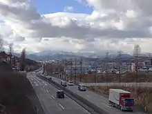 National Route 48 is one of the primary east-west highways in the prefectures of Miyagi and Yamagata and is the main toll-free route between the city of Sendai on the Pacific coast and the city of Yamagata in Yamagata Prefecture's interior plains. It carries traffic across the Ōu Mountains that separate the two cities. The highway's eastern terminus lies at a junction with National Route 45 in Sendai's Aoba ward. Its first stretch is a brief concurrency with National Route 286. Leaving National Route 286 and central Sendai, a 5.4-kilometer-long (3.4 mi) section of the highway, the Sendai Nishi Road, is a limited-access road that connects central Sendai to the cross-country Tōhoku Expressway via 3.13 kilometers (3,130 m) of tunnels.[2][3] Continuing west from the highway's junction with the Tōhoku Expressway, the highway is known as the Ayashi Bypass. The highway meets National Route 457, which is shares a brief concurrency with before that route continues to the south. Crossing into Yamagata Prefecture the highway shares a significant concurrency with National Route 13 in the Yamagata cities of Tendō and Yamagata. The highway while running concurrently with National Route 13, meets its western terminus at a junction with National Route 112 to the south of central Yamagata. The highway has a total length of 75.0 kilometers (46.6 mi).[4]
