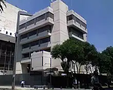 Japanese were allowed to have any type of employment and the government allowed the establishment of a Japanese-language school in Mexico City.[6] They had been forbidden from having meetings with over 10 persons and from traveling during the night since 1941.[5] The Japanese community in Mexico City housed new arrivals in a large building that they got permission to use, and they formed their own mutual aid committee,[9] the Comité Japonés de Ayuda Mutua (CJAM; "Japanese Committee of Mutual Aid"). The CJAM was founded by March 4, 1942, the day a circular announced the foundation of the organization.[4] The CJAM, the sole official Japanese organization in Mexico during World War II,[3] originally located at No. 112 Sor Juana Inez de la Cruz, funded by 230,000 pesos collected from property sales, including the property sold by the defunct Japanese Association of Mexico City, and donations. Ethnic Japanese originating from various states who were formerly leaders in other Japanese associations became the leaders of the new CJAM. The CJAM later moved to No. 327 Calle de Antonio Abad.[4] The CJAM had difficulty getting financing due to the Mexican government's December 10, 1941 freeze of Japanese assets,[10] and throughout the war U.S. intelligence agencies suspected that the CJAM was a Japanese intelligence asset.[8] In the 1940s the CJAM obtained a hacienda on 200 hectares (490 acres) of land in Temixco from Alejandro Lacy so it could house newly-arriving Japanese coming from other parts of Mexico.[11]