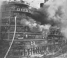 On 16 December 1932, the Shirokiya Department Store fire in Tokyo resulted in 14 deaths. During the fire, many saleswomen in kimono were forced onto the roof of the eight-storey building. Rumors later spread that some of these women refused to jump into the safety nets held by firefighters on the ground. Traditionally, women did not wear undergarments with kimono, and they were afraid they would be exposed and ashamed if they jumped. As a result, they died.[1][2] This news attracted attention from as far away as Europe. It has been alleged that in the aftermath of the fire, department store management ordered saleswomen to wear panties or other underwear with their kimono, and the trend spread.[1][2]